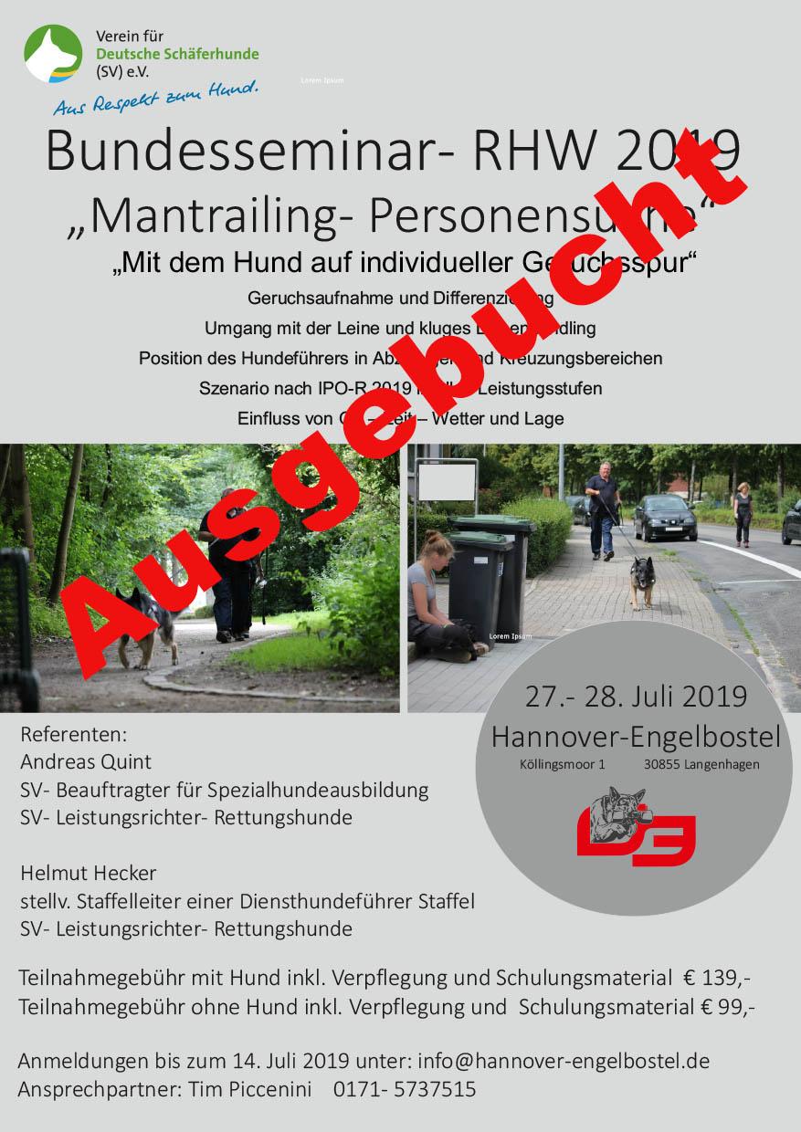 From  8. – 10. November 2019 the  Bundesfährtenhundprüfung will take place in…
